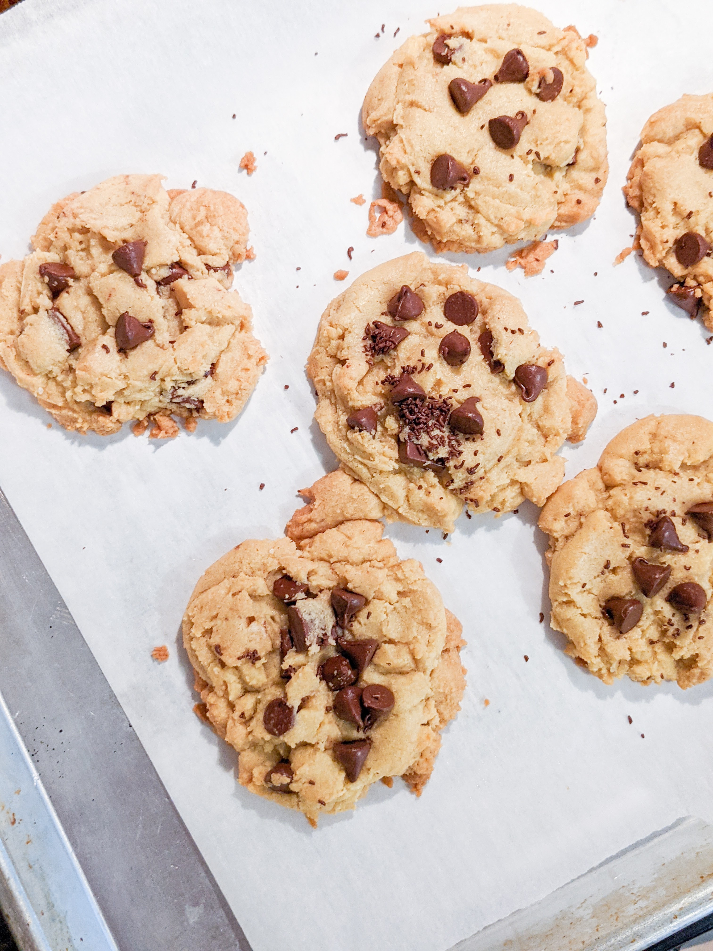 - If you don’t want to bake the whole batch of cookies, you can pre-portion the dough and freeze your cookie dough balls. I recommend portioning out the dough onto a baking sheet lined with parchment paper. Allow the dough to freeze before placing the dough into a freezer safe bag. Bake these frozen cookies straight from the freezer at 325°F for 13-15 minutes, or until edges are slightly browned.