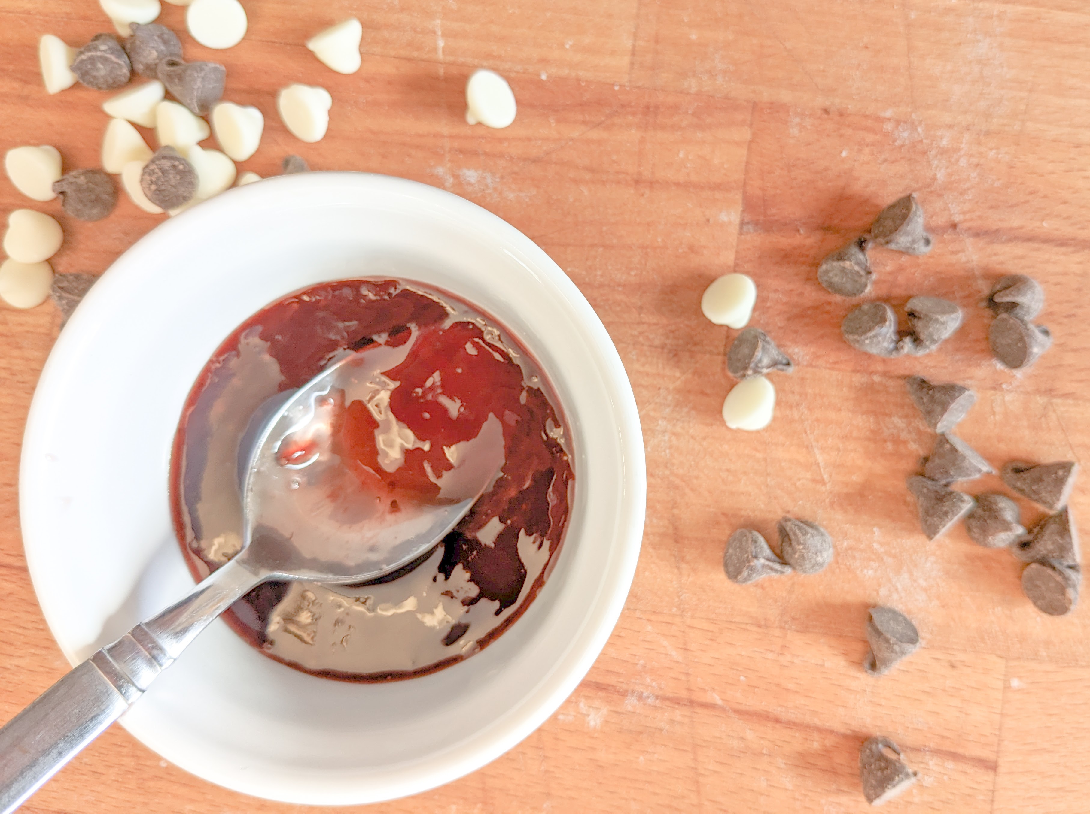 I also made a strawberry white chocolate version. I replaced the chocolate chips with about a tablespoon of strawberry jam and some white chocolate chips for each rectangle. These were so tasty, with a delicious jammy and chocolately center.