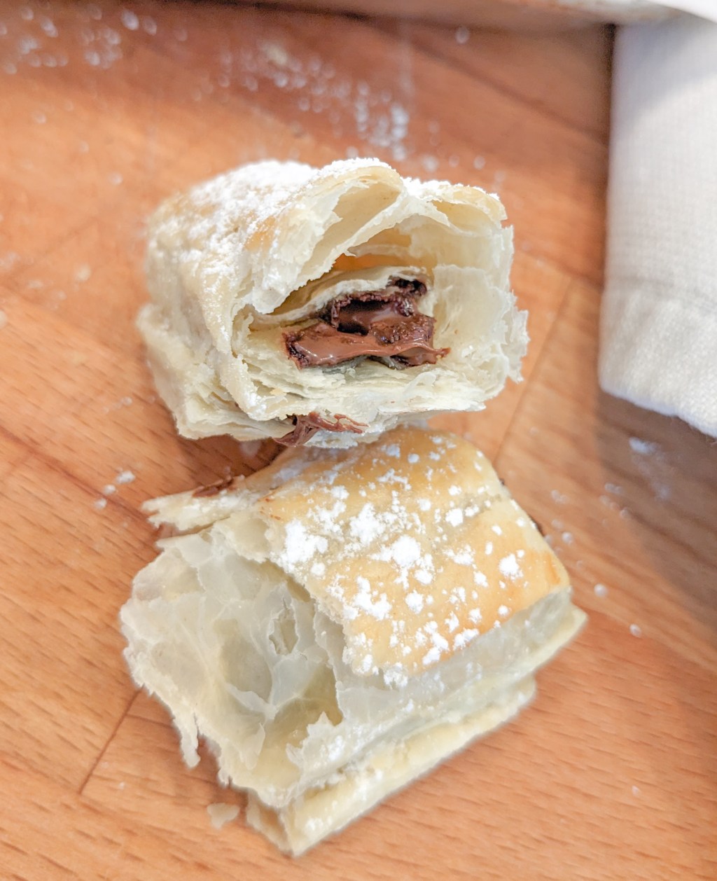 I am a HUGE fan of chocolate croissants. Those flaky, buttery, delicious pastries that just melt in your mouth. I love them…but I don’t really love the idea of making them. It just seems like a very tedious and challenging task. Homemade croissants take a lot of time and patience, which, as a mom of 3 little ones, I just don’t have. But what if I told you that I found a quick and easy way to make them at home in 30 minutes?! I’m serious. These little puff pastry bites are so good, and they don’t require much time or effort!